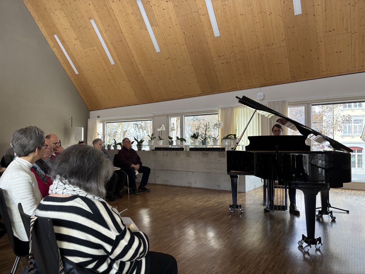 Johannes Lienhart spielt ein stimmungsvolles Matinée mit virtuosen Stilimprovisationen von Kirchengesangbuchliedern, welche von den zahlreichen Besucherinnen und Besuchern gewählt werden konnten.