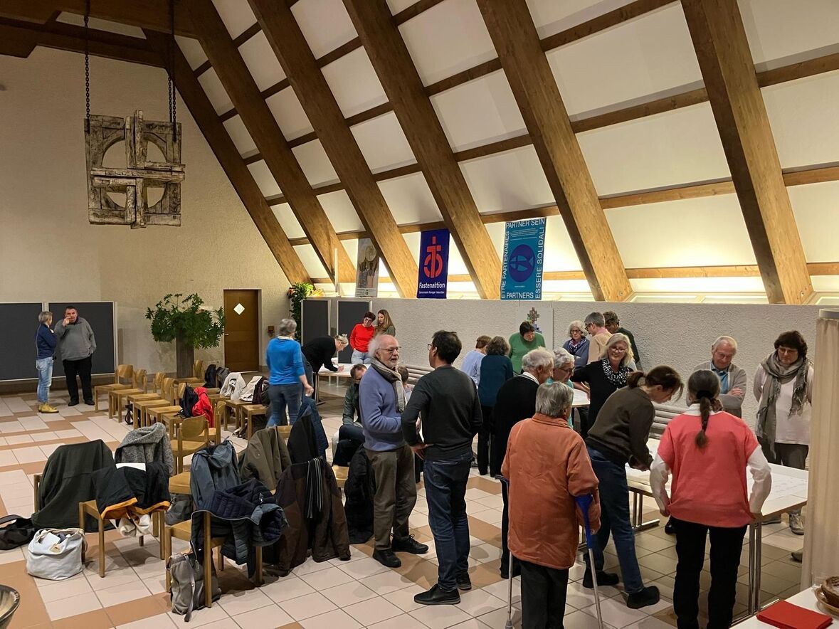 In der ökumenischen Gemeinde ist es eine Tradition, die Kirchbürger mit Haldenforen in Entscheidungen und -Informationen über die Zukunft mit einzubeziehen. Wir nennen es eine Art von «Landsgemeinde».