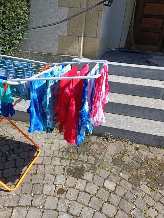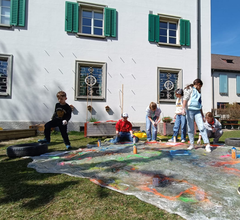 Heute war ein kreativer und bunter Tag im Kindertageslager! Am Morgen haben die Kinder mit viel Begeisterung ihre eigenen Batik-Shirts gestaltet. Mit verschiedenen Farben und Techniken zauberten sie einzigartige Muster, die den Frühling in allen Farben widerspiegelten. Jeder konnte seiner Fantasie freien Lauf lassen und ein persönliches Kunstwerk erschaffen.