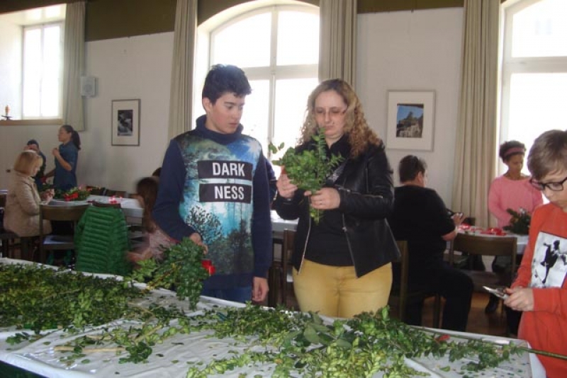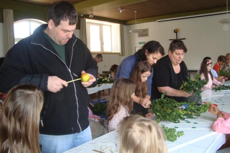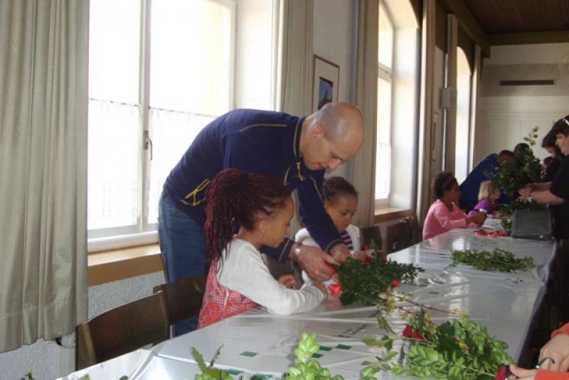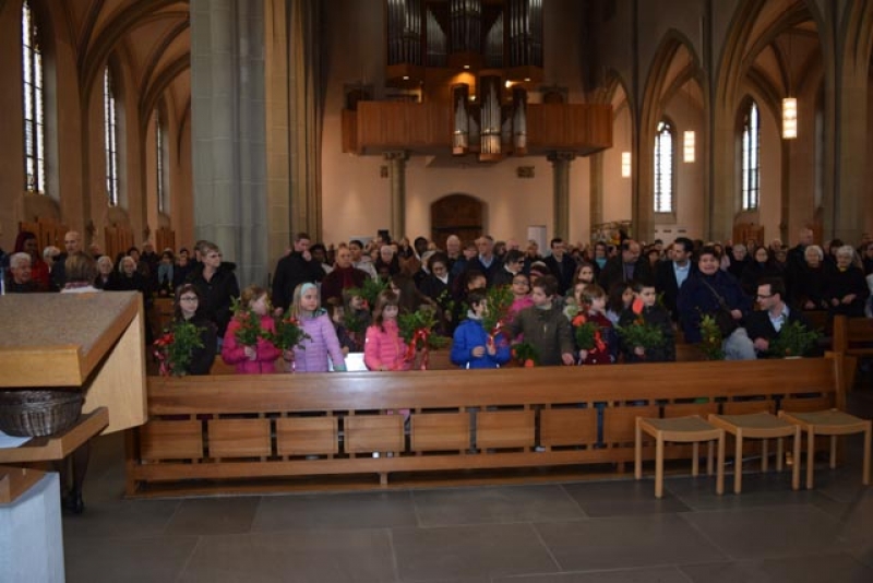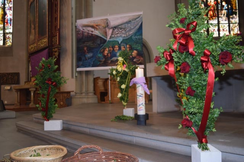 Im Familiengottesdienst an Palmsonntag wurde fröhlich gesungen und gejubelt! Erstkommunionkinder hatten zusammen mit ihren Eltern Palmsträusschen gebunden und zum Jubelruf im Gottesdienst geschwenkt. Mit Freude wurde dabei an die feierliche Ankunft Jesu in Jerusalem gedacht. Unterstützt wurden sie musikalisch von Pauke und Trompete, von Orgel, Gitarre und Akkordeon.
