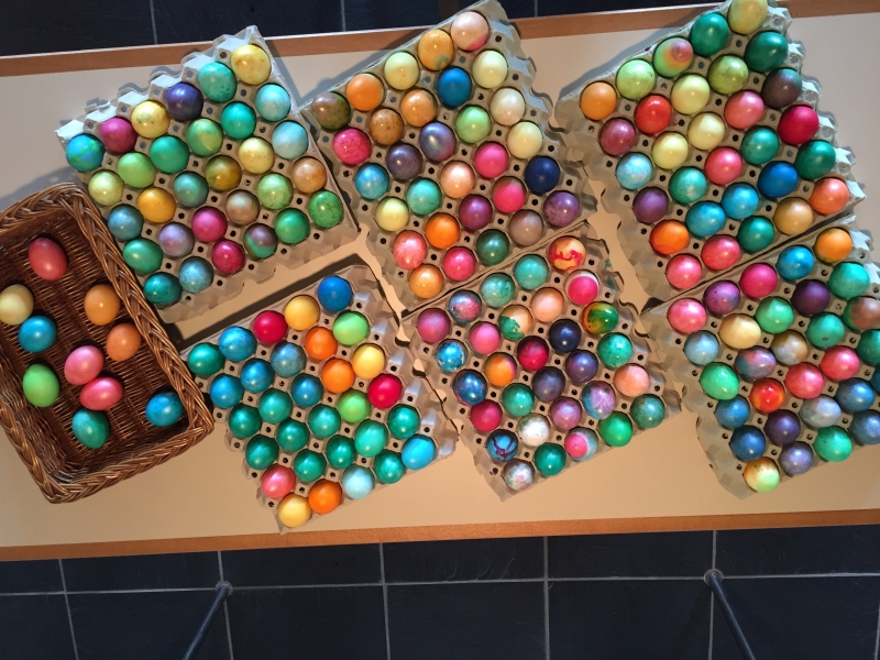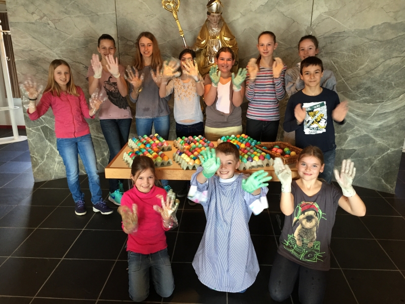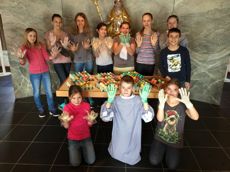 Jedes Jahr färben die Ministranten von Wittenbach die Ostereier, die dann nach der Osternachtsfeier zum Eiertütschen verteilt werden