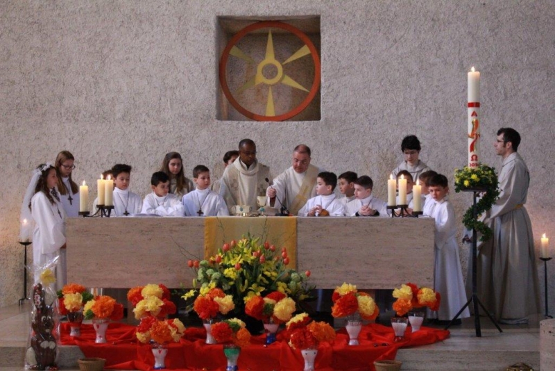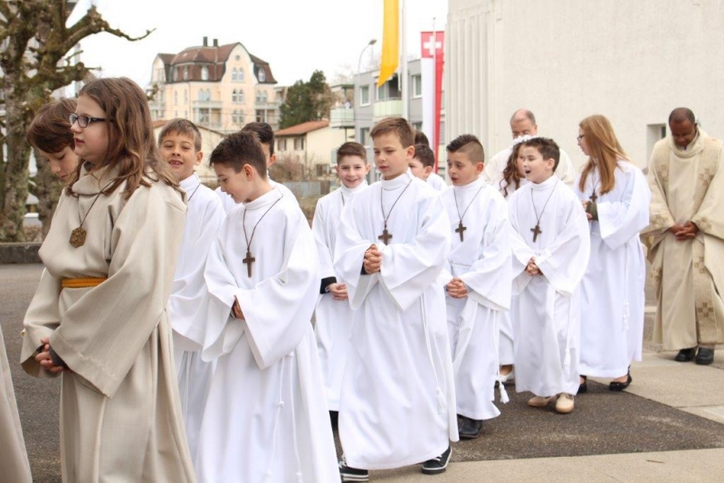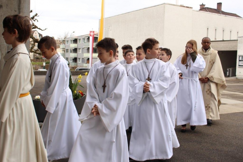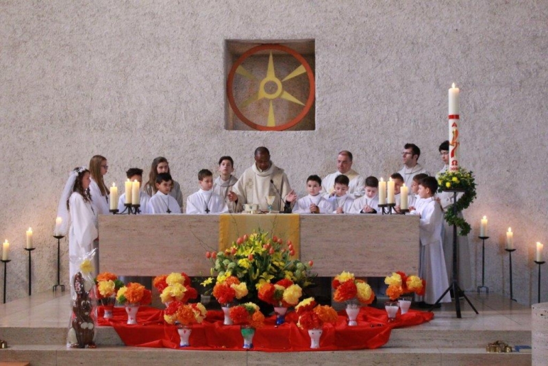 Am Ostermontag empfingen im Familiengottesdienst zur Erstkommunion 11 Kinder (mit 7 verschiedenen Herkunftsländern) zum ersten Mal den Leib Christi.