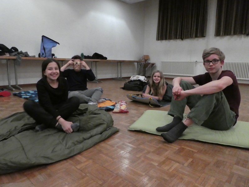 Trotz der kurzfristigen Programmänderung haben sich alle Teilnehmenden entschieden mitzukommen. So haben wir uns am Samstag auf den Weg nach Frauenfeld gemacht. In der Pfarrei St. Anna haben wir für die erste Nacht Unterschlupf bekommen. Nach der Ankunft in Frauenfeld blieb kaum Zeit zum Durchatmen. Gleich ging es los auf die Stadtchallenge. In zwei Gruppen waren innerhalb zwei Stunden verschiedenste herausfordernde Aufgaben zu erfüllen, u.a. eine Haarlocke zu besorgen, so viele Visitenkarten wie möglich zu sammeln und Passanten zu motivieren ein Lied vor der Kamera zu singen.
