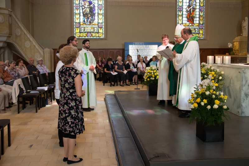 Am vergangenen Samstag, 3. September, nahm Bischof Markus Büchel zwei Pastoralassistenten und drei Katechetinnen in den ständigen Dienst des Bistums St.Gallen auf. Der Gottesdienst wurde in der Kirche St.Maria Neudorf, St.Gallen, gefeiert.