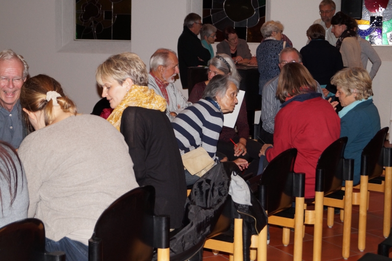 Pfarreiangehörigen an diesem Abend. Es wurde das Resultat der gemeinsamen Tagung von dem kath. Pfarreirat und der evang. Kirchkreiskommission vorgestellt. Es wurde viel diskutiert um auf dem gemeinsamen Weg einen wichtigen Schritt weiterzukommen.