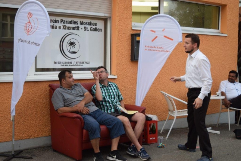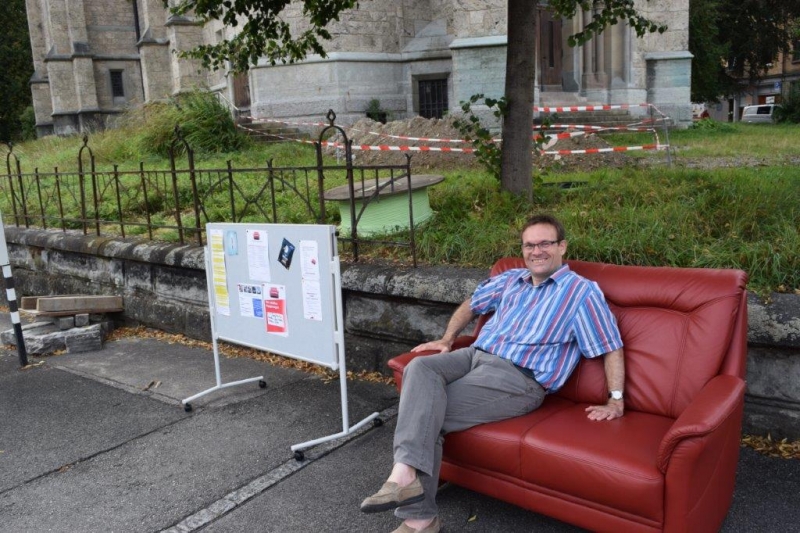 Das „Rote Sofa“ war wieder unterwegs: an verschiedenen Standorten innerhalb der Pfarrei St.Otmar konnte das Sofa angetroffen werden. Das Sofa lud ein, sich darauf für einen kurzen Moment auszuruhen und eine kleine Pause einzuschalten, mit anderen Menschen gemeinsam zu sitzen oder ein Gespräch mit einem Seelsorgenden oder Freiwilligen zu führen. Die daraus entstandenen Begegnungen bereiteten sichtliche Freude, wie die folgenden Bilder zeigen.