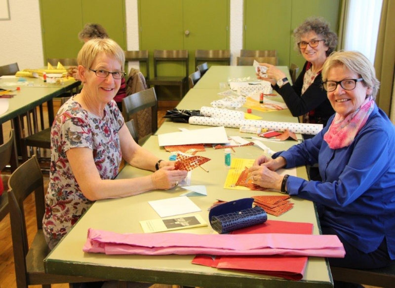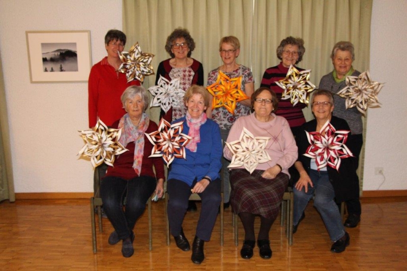 Mitglieder der Frauengemeinschaft bastelten Dreidimensionale Sterne unter der kundigen Leitung von Margrith Bischoff.