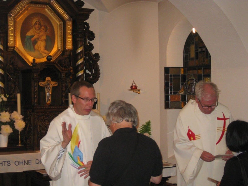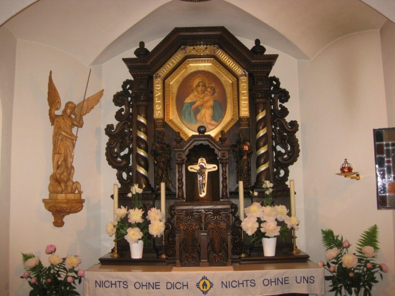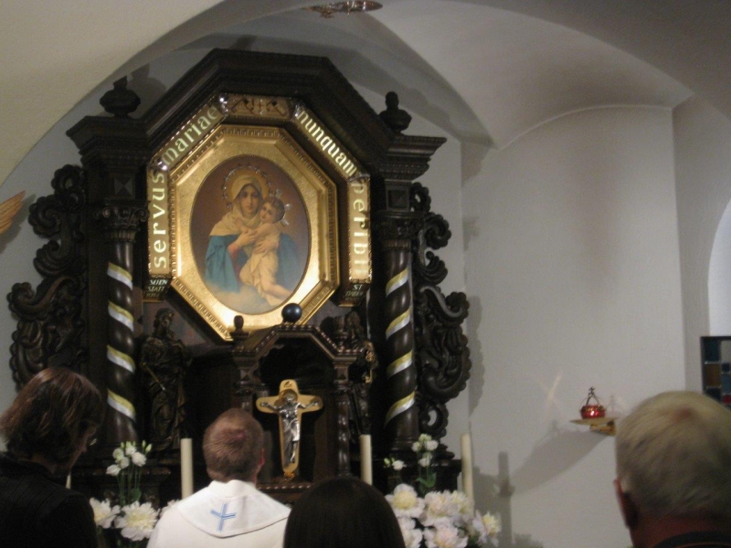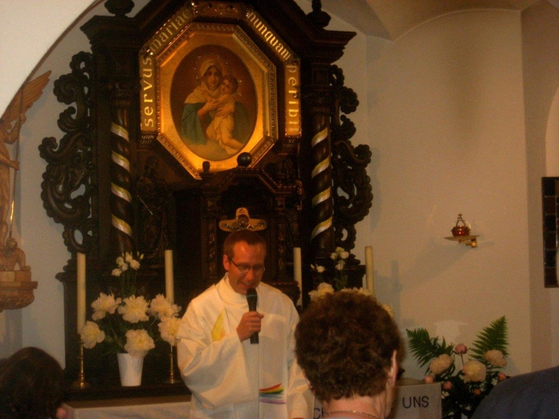 Auch dieses Jahr feierte die Schönstattbewegung der Ostschweiz und ihre Freunde und Bekannte das Kirchenfest der kleinen Kapelle an der Langgasse 21. Nach der Eucharistiefeier in der Wallfahrtskirche Heiligkreuz pilgerten wir zum Heiligtum, wo wir unsere Anliegen an Gott und unsere Beiträge - unser Mittragen am Reich Gottes - auf Zettel schrieben und in den Krug geben konnten. Dort erneuerten wir auch unser Bündnis der Liebe mit der Gottesmutter. Wer wollte, konnte dann einen persönlichen Segen empfangen. Gott selber soll uns wieder Kraft geben für den Alltag. Anschliessend gab es Möglichkeit zur Begegnung bei Wurst und Brot, Getränke und Kuchen. Danke allen, die zum Gelingen des Festes beigetragen haben...