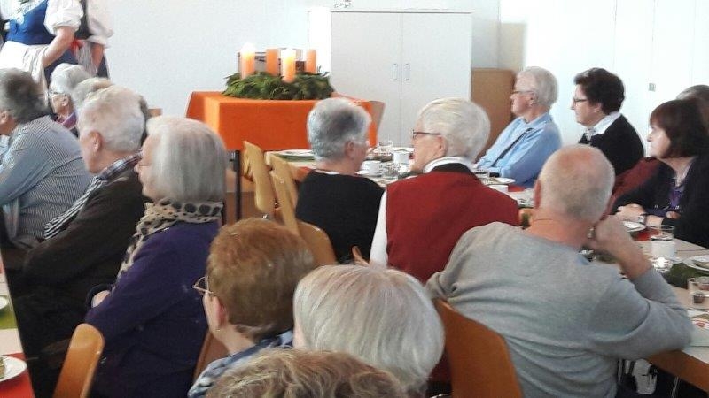 Der FMG-Vorstand lud am 6. Dezember zum Seniorennachmittag ins Pfarreiheim ein. 50 Gäste genossen im adventlich geschmückten Saal einen feinen Zvieri mit Grittibenz, Schöggeli, Guetzli, Mandarinli und Kaffee oder Tee. Das Bäuerinnen-Chörli Gossau-Andwil sorgte für die musikalischen Einlagen. Alle waren sich einig: ein rundum gelungener Nachmittag.
