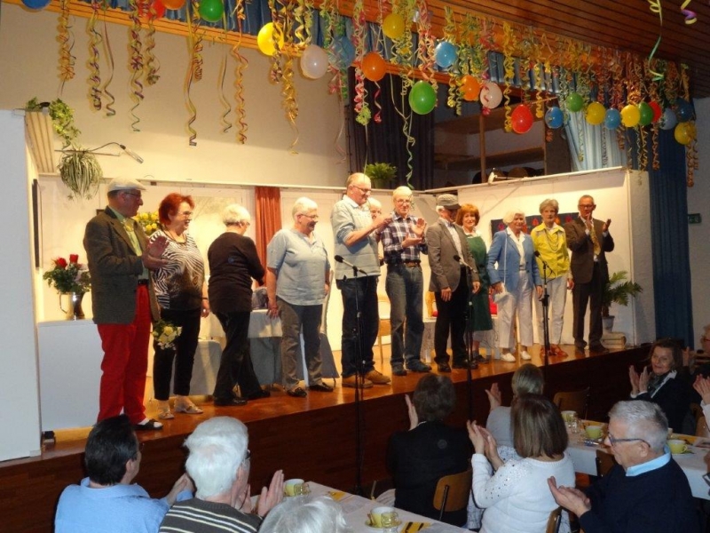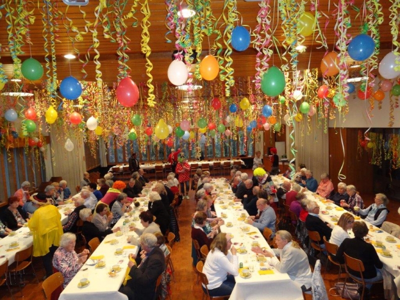 Das Seniorentheater zu Gast im geschmückten Pfarreiheim.