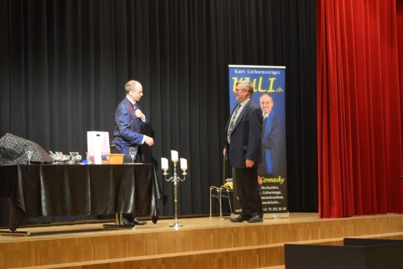 Zauberer "KULI" verzauberte die Ehrenamtlichen der Pfarrei St.Otmar mit seinen Kunststücken.