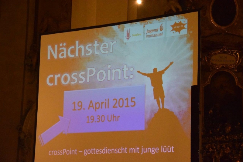 Der crosspoint-Gottesdienst findet zehnmal im Jahr, jeweils am dritten Sonntag im Monat um 19.30 Uhr in der Kathedrale St.Gallen, statt. Durch anregend gestaltete Inhalte zu aktuellen Glaubensthemen werden die Mitfeiernden animiert sich persönliche Gedanken zu machen und sich untereinander auszutauschen. Eingeladen sind alle Gläubigen, die gerne mit jungen Menschen den Glauben in einer zeitgemäss gestalteten Messe feiern möchten.