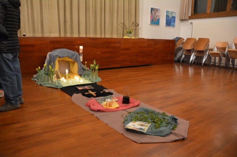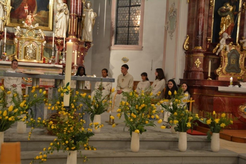 Am Samstagabend durften wir eine besinnliche Osterfeier in der Kirche St.Fiden, und für die Kleinen, als Chinderfiir im Pfarreiheim erleben. Das Feuer vor der Kirche, die Prozession, die neue Osterkerze - und schliesslich das Eiertütschen!