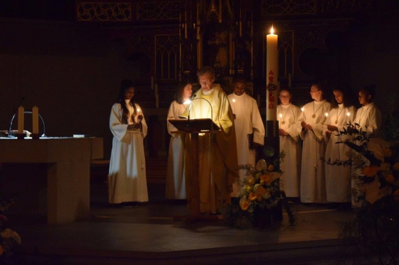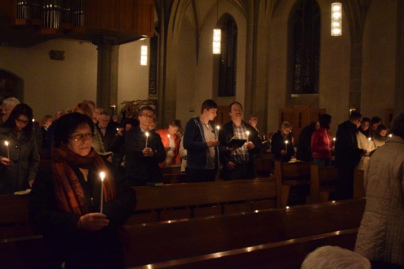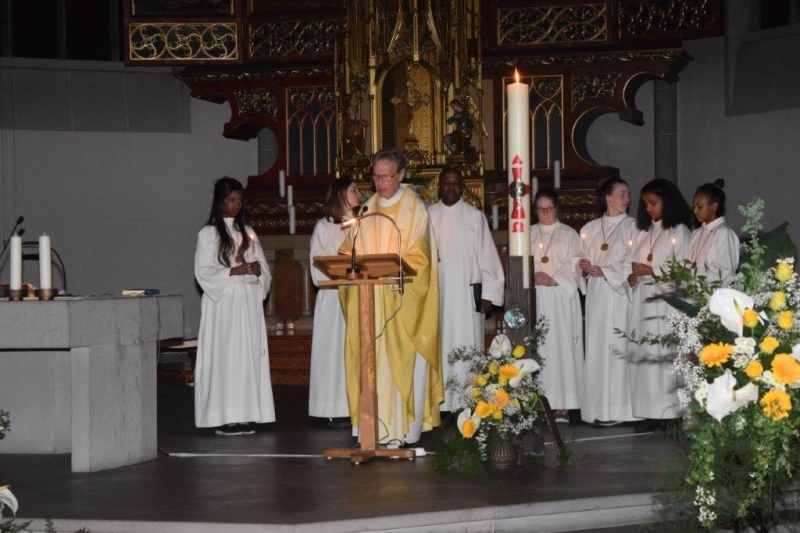 Die symbolreiche Liturgie der Osternacht trug viel zur besinnlichen Stimmung in der Kirche St.Otmar bei. Anschliessend fand ein Apéro mit Eiertütschent im Pfarreizentrum statt.