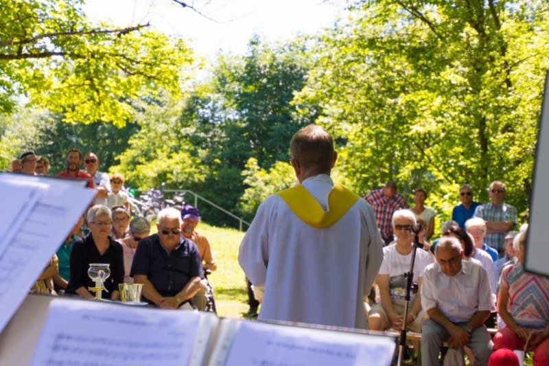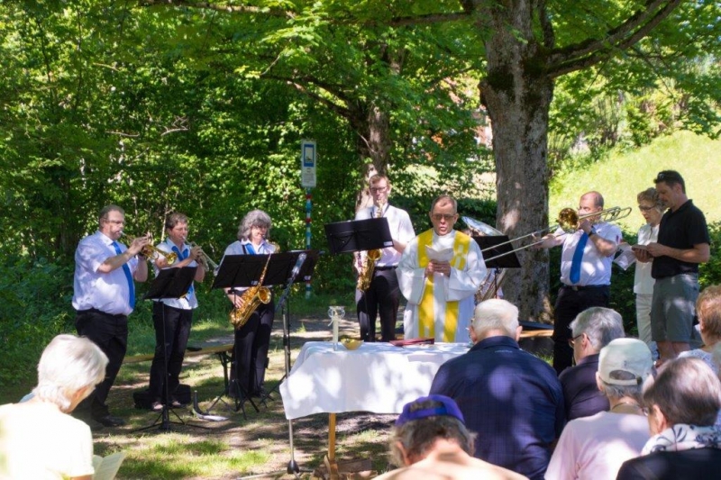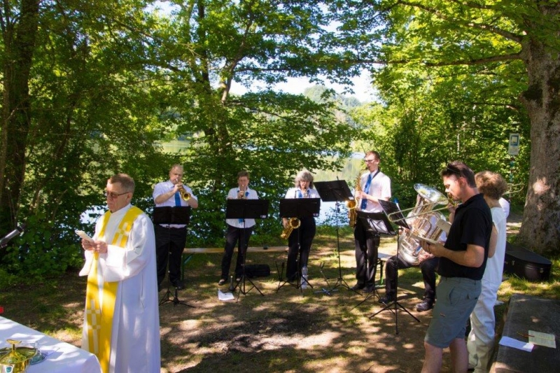 Bei schönstem Sonnenschein feierten die Pfarreien Winkeln und Bruggen gemeinsam am Gübsensee einen Feldgottesdienst in der wunderbaren Natur unter der Leitung von Pfarrer Heinz Angehrn, musikalisch untermalt von einem Alphorn-Duo und dem Ökumenischen Bläserkreis Strauenzell und orgaisatorisch vor- und nachbereitet vom Pfarreirat Winkeln und Vertretern der Pfadi Bruggen/Winkeln.