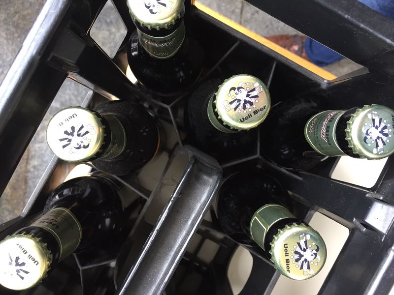 Keine Frage darum, dass auch beim Apéro Ueli-Bier (gebraut von einer Basler Kleinbrauerei) ausgeschenkt wurde.
