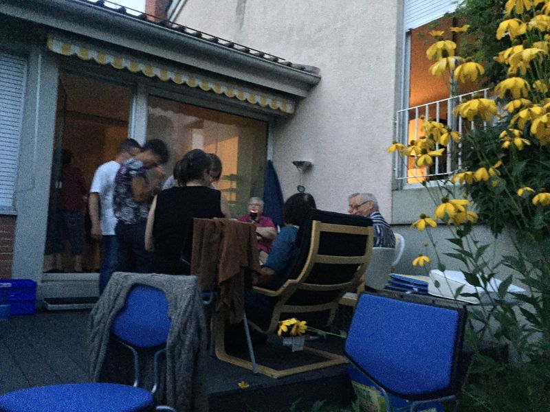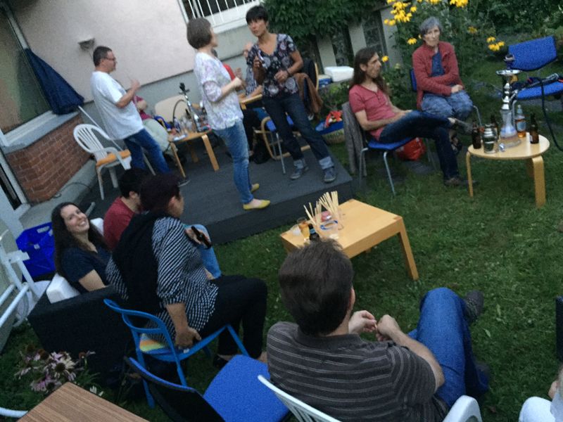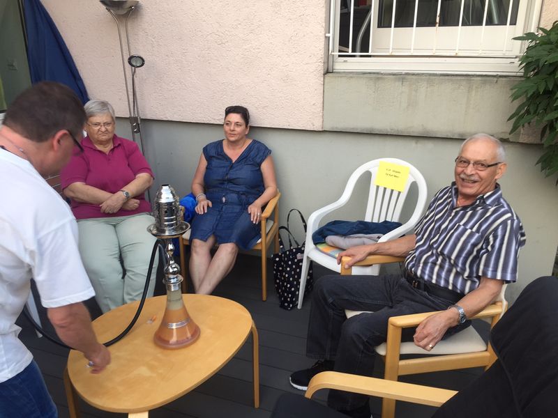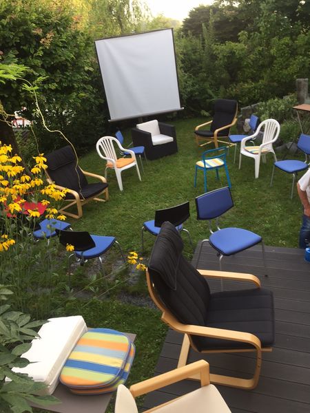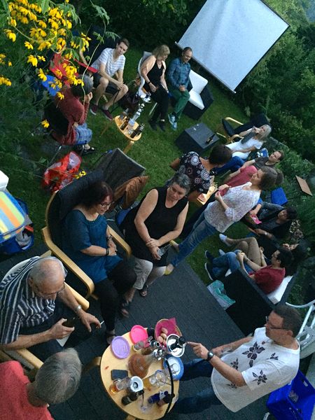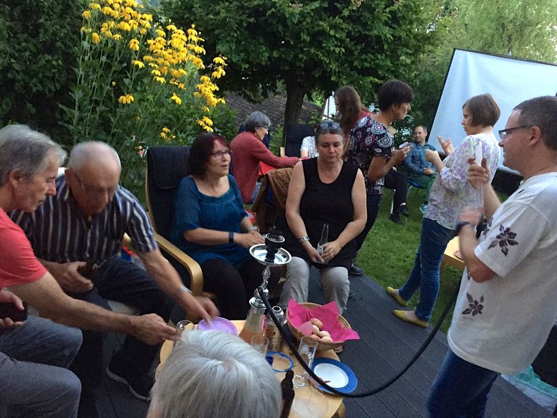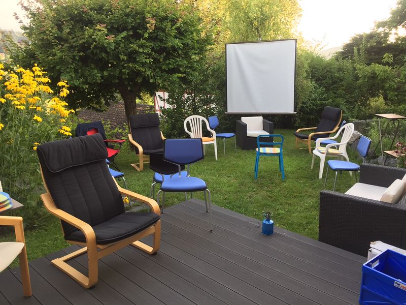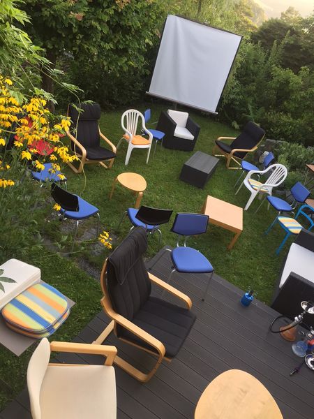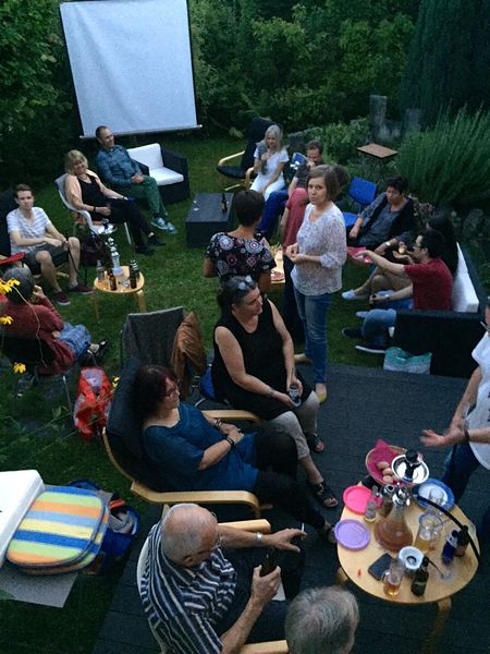 Gesellige Runde im Pfarrhausgarten mit rund 30 Biersorten, 2 Shishas und dem anschliessenden Film
