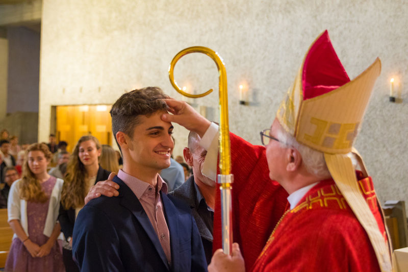 Firmanden, Paten, Gäste und alle Mitferiernden der Pfarreien Bruggen und Winkeln durften gemeinsam mit Bischof +Markus einen lebendigen Gottesdienst zur Firmung feiern.