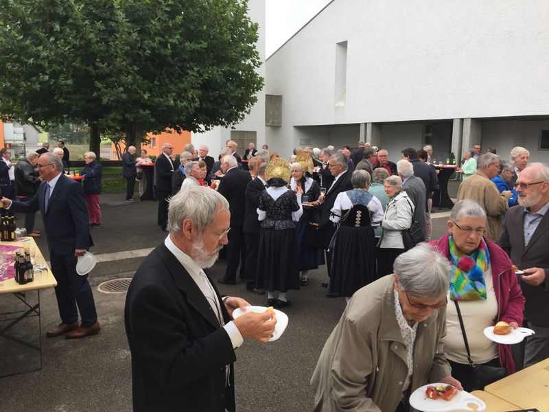 Besonders in Erinnerung wird wohl der festliche Apero bleiben, der in diesem Jahr endlich einmal wieder im Freien durchgeführt werden konnte... - Einganz herzliches Dankeschön dem tatkräftigen Pfarreirat!!