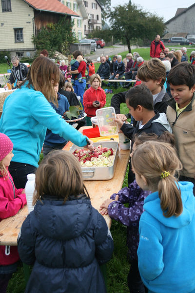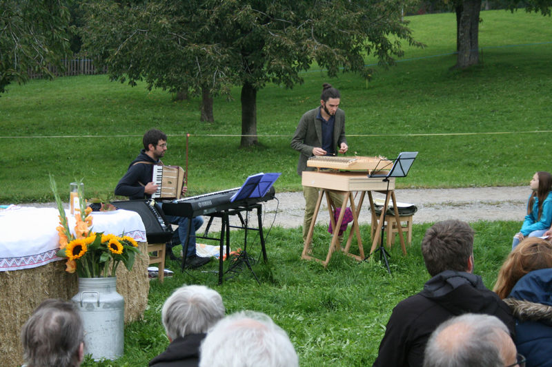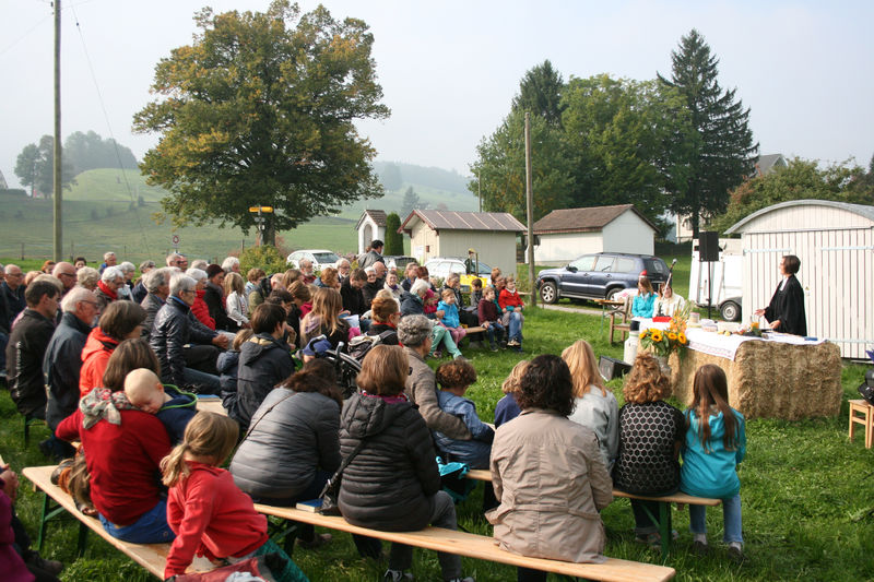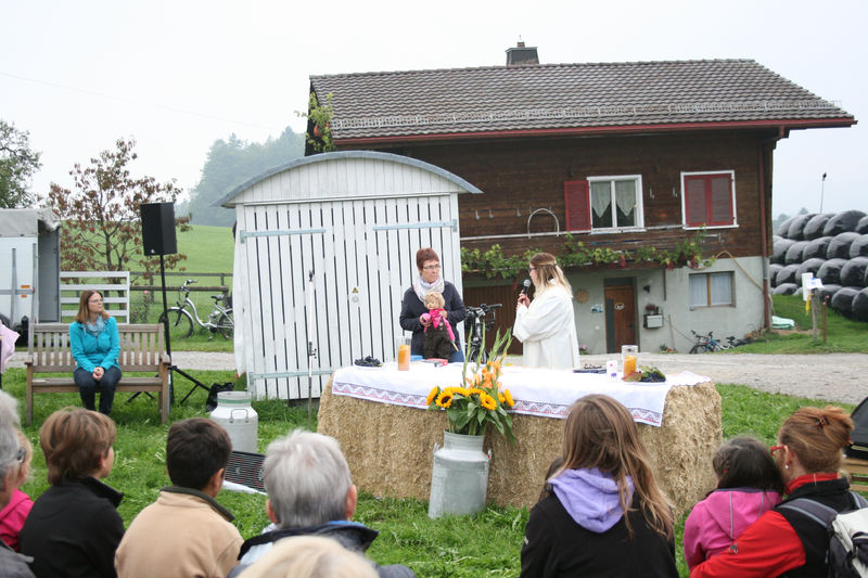 Auch dieses Jahr war uns das Wetter wieder gewogen, als die Kirchen St. Fiden, Grossacker, Neudorf, Stephanshorn und Halden wieder miteinander auf einem der Bauernhöfe in unseren Quartieren Erntedank gefeiert haben. Diesmal ging es auf die Hueb. Familie Huber hat uns ermöglicht, auf ihrem Hof den Gottesdienst zu feiern. Gross und Klein sind gekommen, um ihrem Dank für all das, was uns die Natur schenkt, Ausdruck zu verleihen. So wie es viele verschiedene Bestandteile aus der Natur braucht, um ein Birchermüesli herzustellen, braucht die Kirche verschiedenste Menschen, um Leib Christi zu sein. Der diesjährige Erntedankgottesdienst auf der Hueb war ein wunderbares Erlebnis für Gross und Klein. Die Musik von Elias Menzi am Hackbrett und Alexander Sennhauser am Klavier und am Akkordeon verhalf bei so manchem, dass die sich die gute Stimmung noch weiter vertiefte.