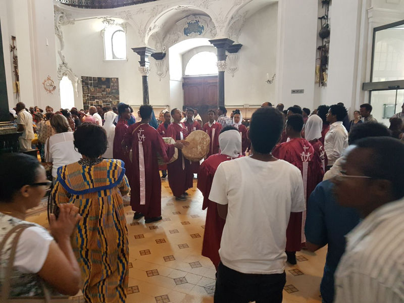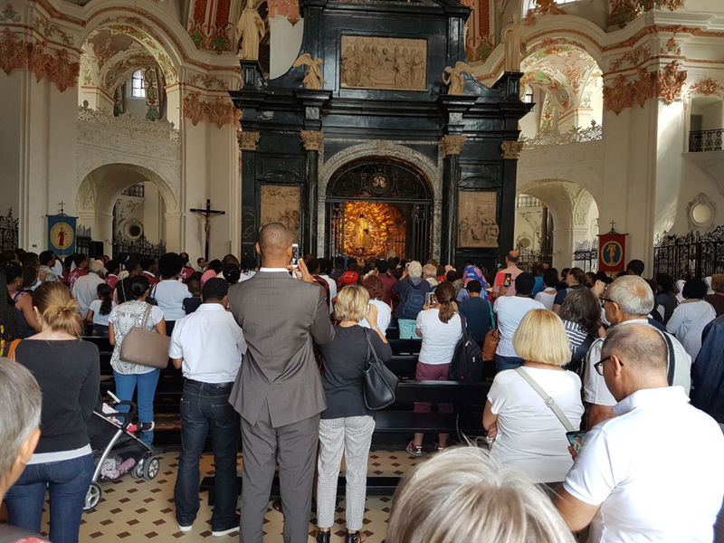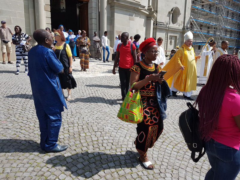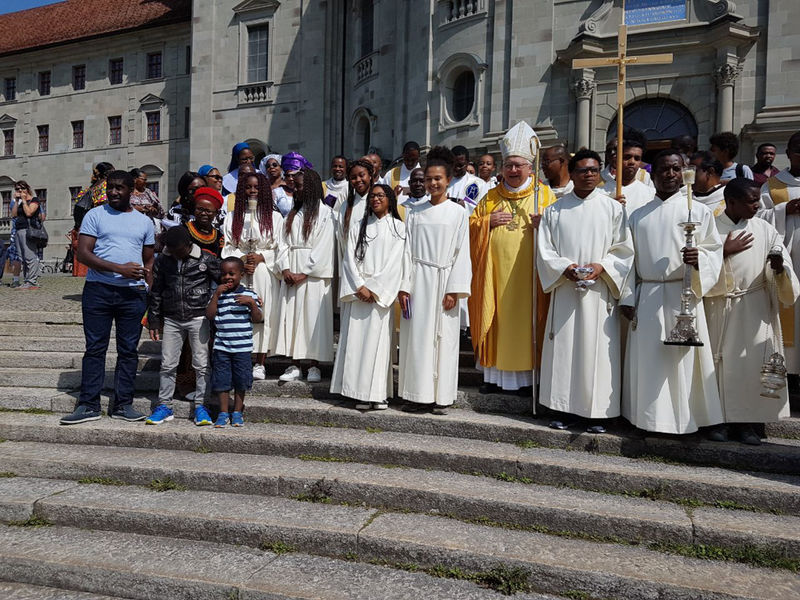 Afrikanische Mitchristen, Angehörige und Interessierte aus der ganzen deutschsprachigen Schweiz versammelten sich zur 7. Afrika-Wallfahrt in Einsiedeln. Bischof Markus Büchel leitete den schwungvollen Gottesdienst, der von afrikanischen Chören umrahmt wurde. Nach dem Gottesdienst trafen sich alle zum Picknick (Teilete) hinter der Klosterkirche.
