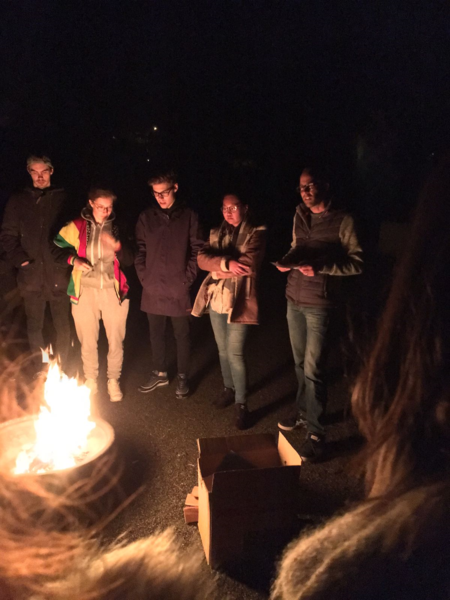 Einer der eindrücklichsten Themenabende auf dem Firmweg ist immer jener auf dem Friedhof. Nach einer Einstimmung in der Kapelle kamen wir auf einem Rundgang zu allerlei Fragen rund um das Leben, das Sterben und was wohl nach dem Tod kommen wird ins Gespräch. Am Osterfeuer hörten wir dann, welches die christliche Botschaft zur Auferstehung ist und dass uns der Glaube Hoffnung auf ein Leben nach dem Tod gibt. Dies wurde anschliessend in mit einer speziellen Feier in Form eines Whatsapp-Gottesdienstes vertieft.