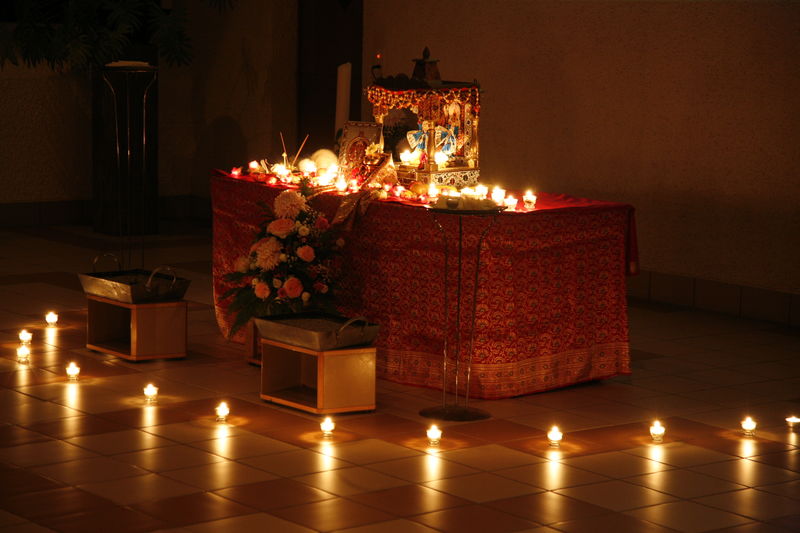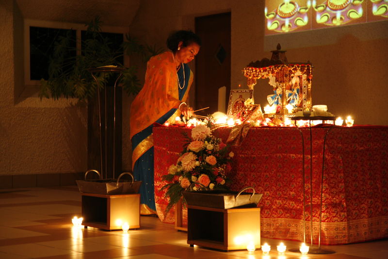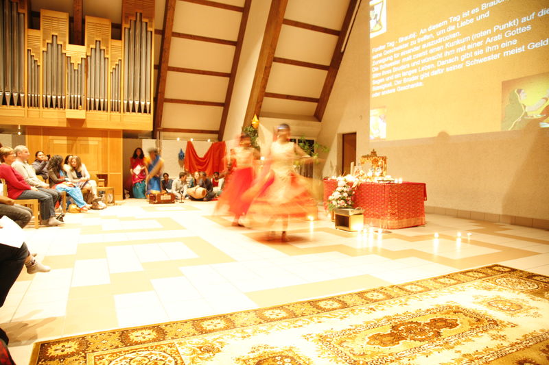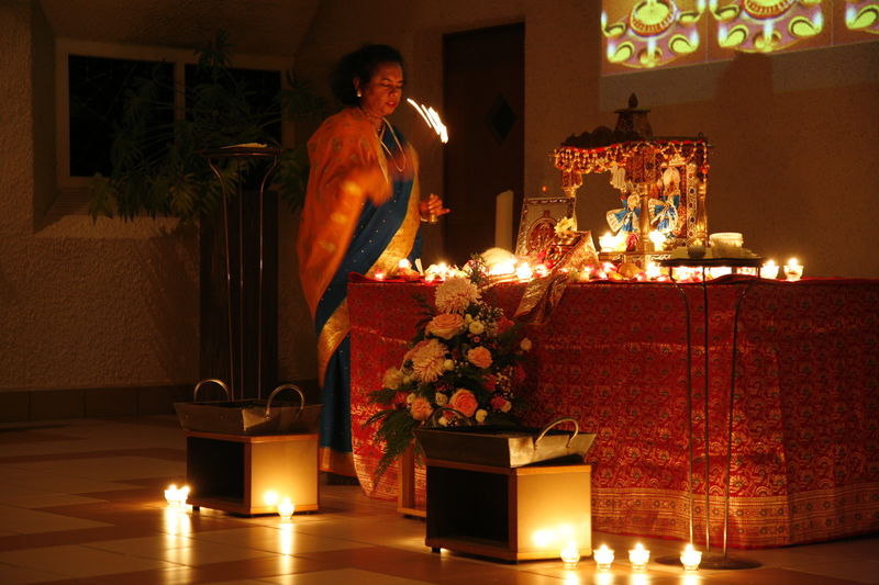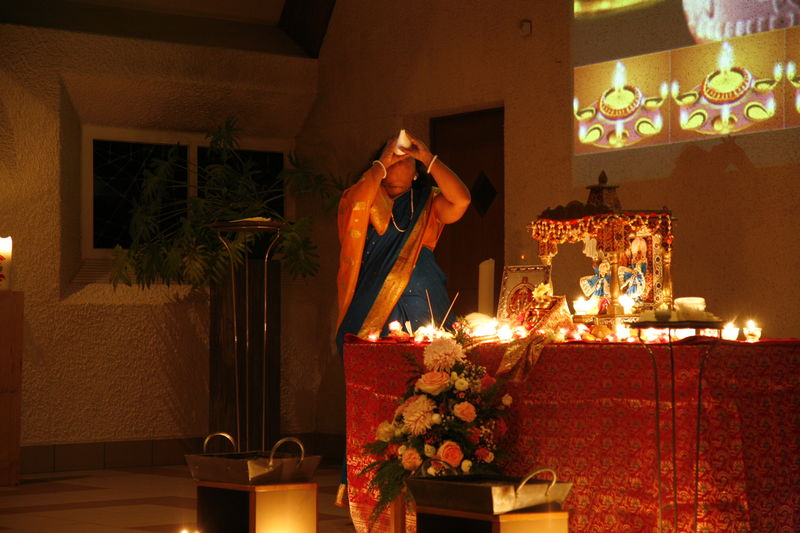 Auch in diesem Jahr hat die hinduistische Community der Gruppe "Interreligiöses Gebet Halden" ihr grosses Lichterfest "Divali" in der Haldenkirche gefeiert. Ein Pracht an Farben, Klängen und Gerüchen hat uns nach Indien entführt. Durch Rituale und kurze Erklärungen wurden die Bedeutung und Feierformen von Divali veranschaulicht und erfahrbar gemacht. Natürlich durfte nach der Zeremonie in der Kirche auch das gemeinsame Znacht mit köstlichen indischen Speisen nicht fehlen. Ein wahres Fest der Farben!