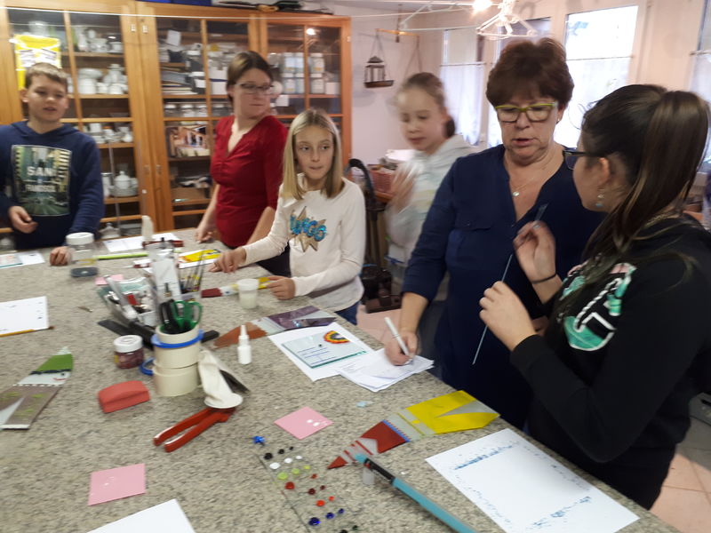Eine Gruppe von Jugendlichen verbrachte den Nachmittag in der Glass Fusing Werkstatt in Niederwil.