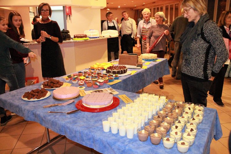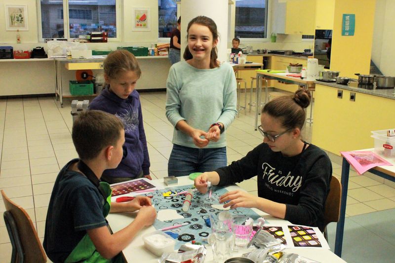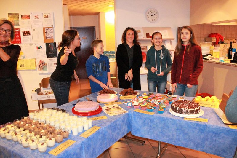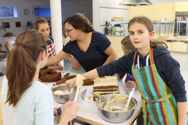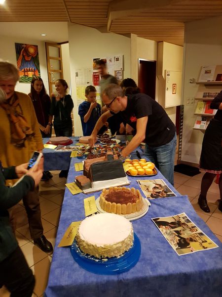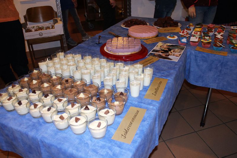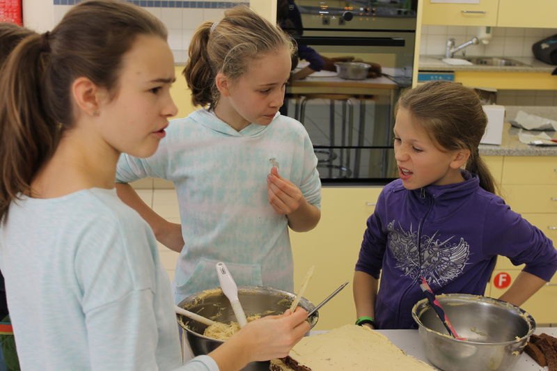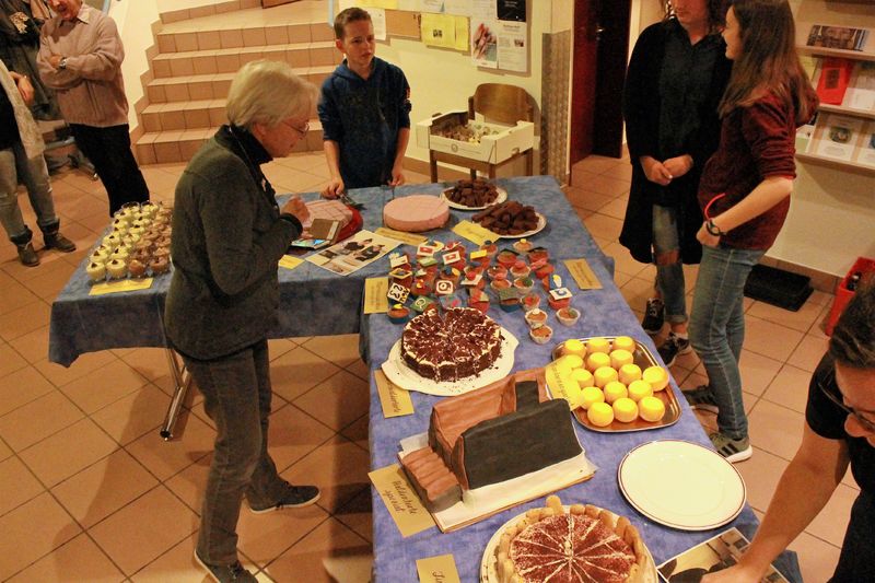 Für eine Tortenschlacht ging es dann doch ziemlich gesittet zu und her in der Schulküche des Notkerschulhauses... Die Herausforderung, für 90 Personen ein Dessertbuffet herzurichten erforderte von den beteiligten Jugendlichen vollen Einsatz. 5 Stunden lang wurde mit viel Freude und Enthusiasmus gerührt, geknetet, gebacken, verziert und natürlich auch probiert. Das Resultat konnte sich mehr als sehen lassen und löste bei den Gästen in der Haldenkirche helle Begeisterung aus. Von den Schwarzwälder- oder Kirschtorten über Tobleronemousse und Limettencreme bis hin zu Cheesecakes und Mandarinenparfait war für jeden Geschmack etwas dabei. Das Schmuckstück des Buffets war eine Motivtorte in Form der Haldenkirche, einfach wow! Ein grosses Lob und ein noch grösseres Dankeschön gilt den Bäckerinnen und Bäckern, die an diesem Mittwochnachmittag alles gegeben haben. Ihr wart spitze!