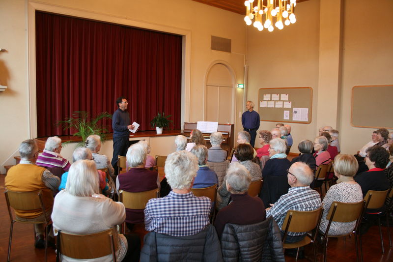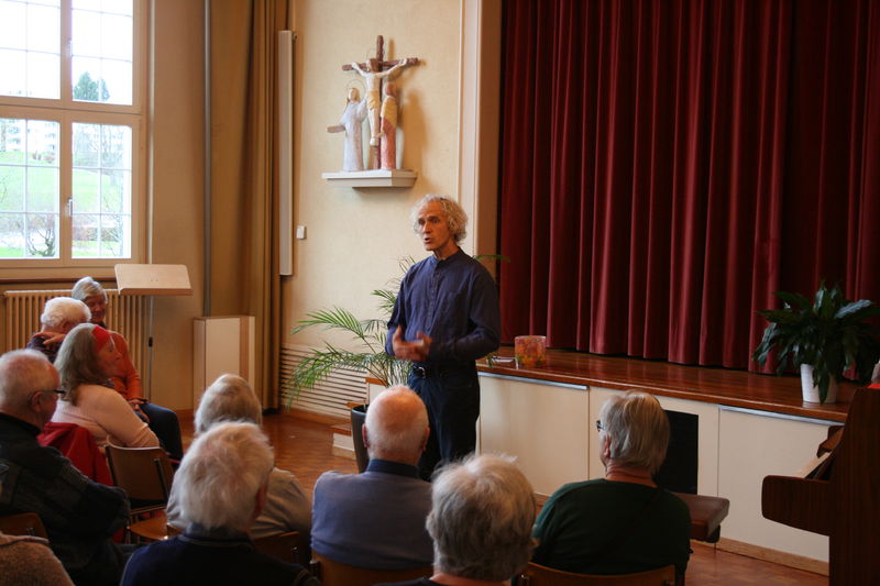 Der Künstler Cornelis Rutgers hat im Rahmen der ökumenischen Nachmittags für SeniorInnen Leo Tolstois bekannte Erzählung "Martin, der Schuster" lebhaft und farbenfroh erzählt. Seine dramatisch in Szene gesetzte Lesung umrahmte mit Klaviermusik von Tschaikowski und Grieg. Dazu luden die Kirchen Grossacker, St. Fiden, Halden, Stephanshorn und Neudorf ins Pfarreiheim Neudorf ein. Bei Kaffee, Tee und Nussgipfeli konnte die eindrucksvolle Erzählung genüsslich ausklingen.