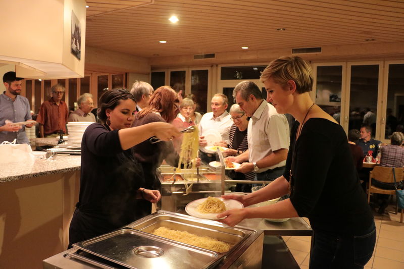 Auch beim bunten Dankesabend brachten Menschen ihre Gaben ein: Mitglieder aus dem Haldenrat und dem Seelsorge-Team waren um die Organisation, den Apéro und die Spaghettata besorgt; die Young Believers liessen alle von ihrer peppigen Musik geniessen; Jugendlich bereiteten gemeinsam mit Kornel Zillig und Patrizia Hinrichs vom Yesprit-Team ein super-feines und kreatives Dessertbuffet vor und Josef Wirth gab mit dem Seelsorge-Team wieder einmal einen seiner humorvollen und feinsinnigen Sketch zum Besten.
