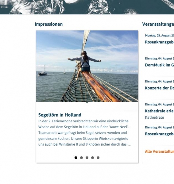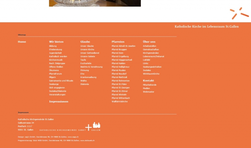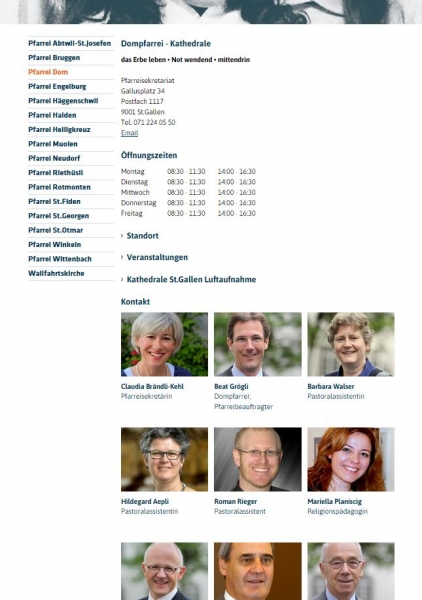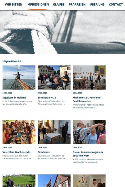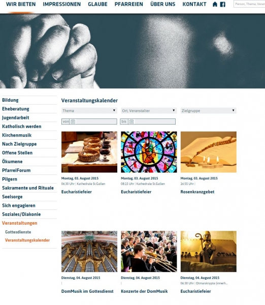 Die neue Website der Katholischen Kirche im Lebensraum St.Gallen ist seit 5. August 2015 online. Wie die Seite aufgebaut ist und welche Funktionen Sie nutzen können, sehen sie in der Galerie unten (Klicken Sie auf das erste kleine Bild um die Galerie anzuschauen). Falls Sie Fragen zur Website haben oder eine Rückmeldung geben möchten, freut sich der Webmaster Roman Rieger auf Ihre Kontaktaufnahme.