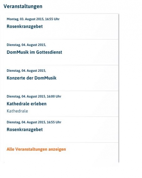 Rechts finden Sie den Schnellzugriff zum Veranstaltungskalender und zu den Gottesdiensten sowie zu aktuellen Themen oder Veranstaltungen.