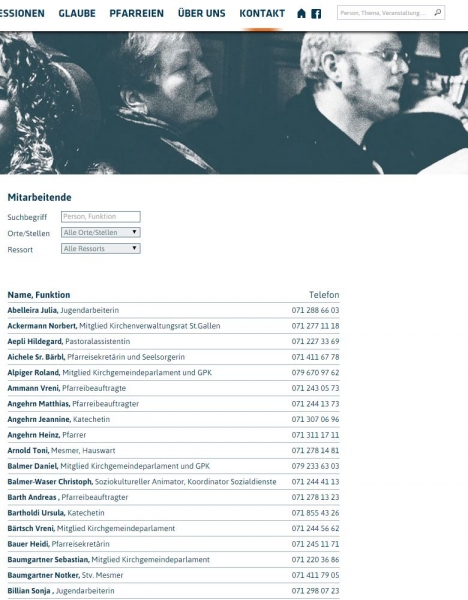 Die Mitarbeitenden in den Pfarreien, in den Sozialdiensten oder auf den Arbeitsstellen werden mit Bild angezeigt. Klicken Sie auf die Bilder.
