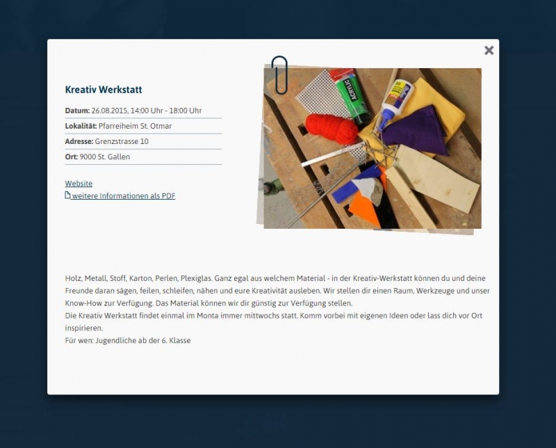 Die Detailansicht eines Anlasses enthält Flyer und weitere Informationen zum Anlass.