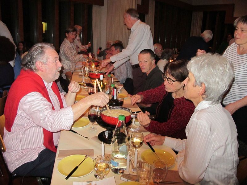 Neujahrsbegrüssung mit Fondue. Für die Zubereitung waren die Eingeladenen selber besorgt.