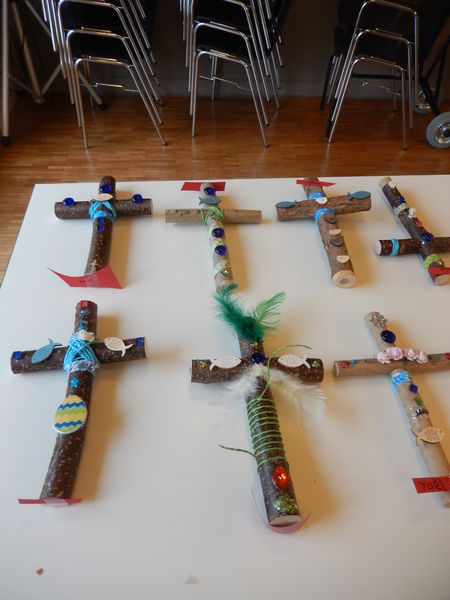 Am Samstag trafen sich 17 Drittklässler, um sich zusammen mit ihren Katechetinnen und Eltern auf das Sakrament der Erstkommunion vorzubereiten. unter dem Thema "Ich bin der Weinstock" dachten sie über ihre beziehung zu gott nach, fertigten ihr Kreuz an und bastelten ein Andenken an diesen Nachmittag.