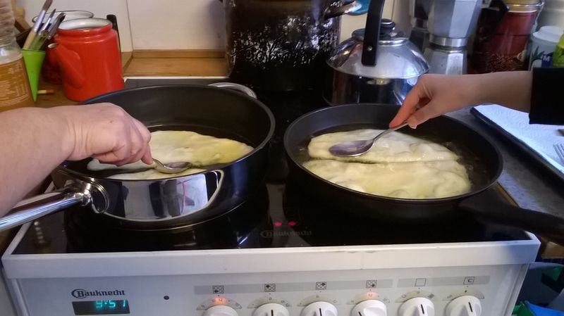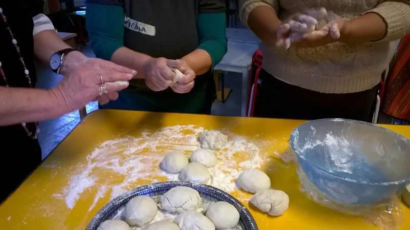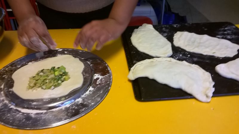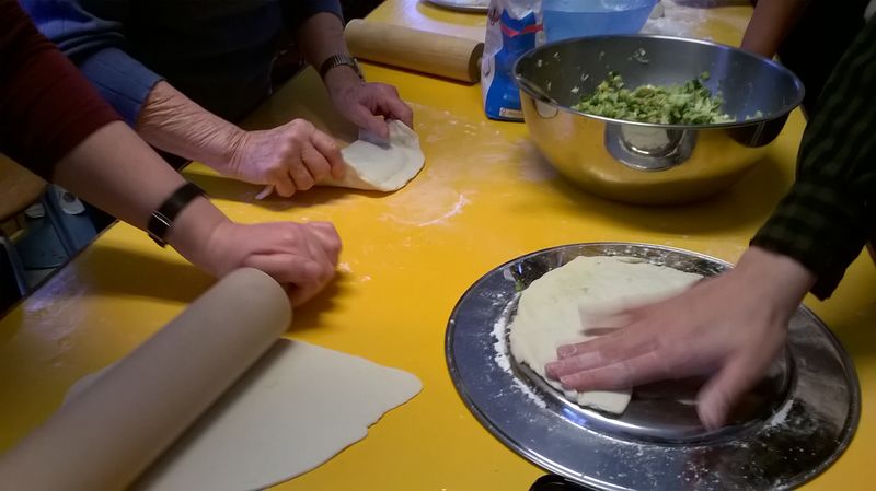 Unter der kundigen Anleitung von Marzie und Masome bereiten wir köstliche Teigtaschen, genannt Bolani, zu