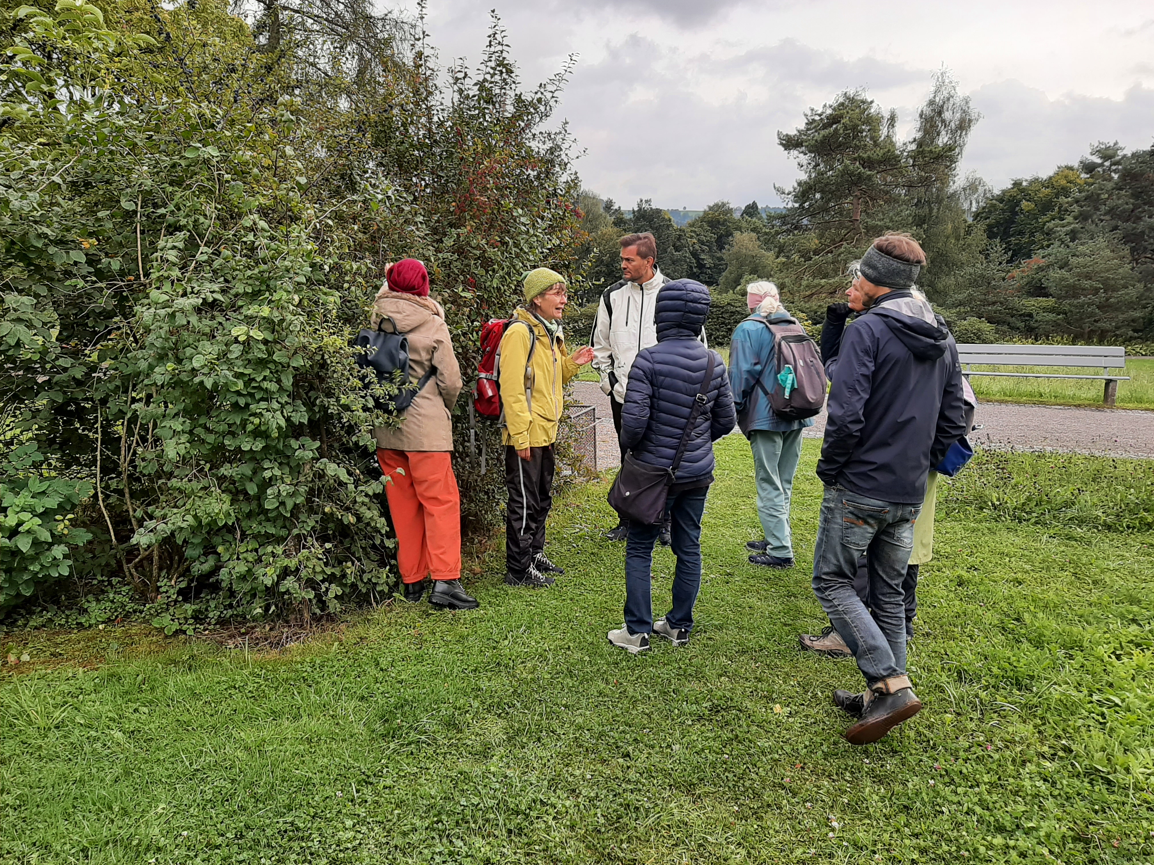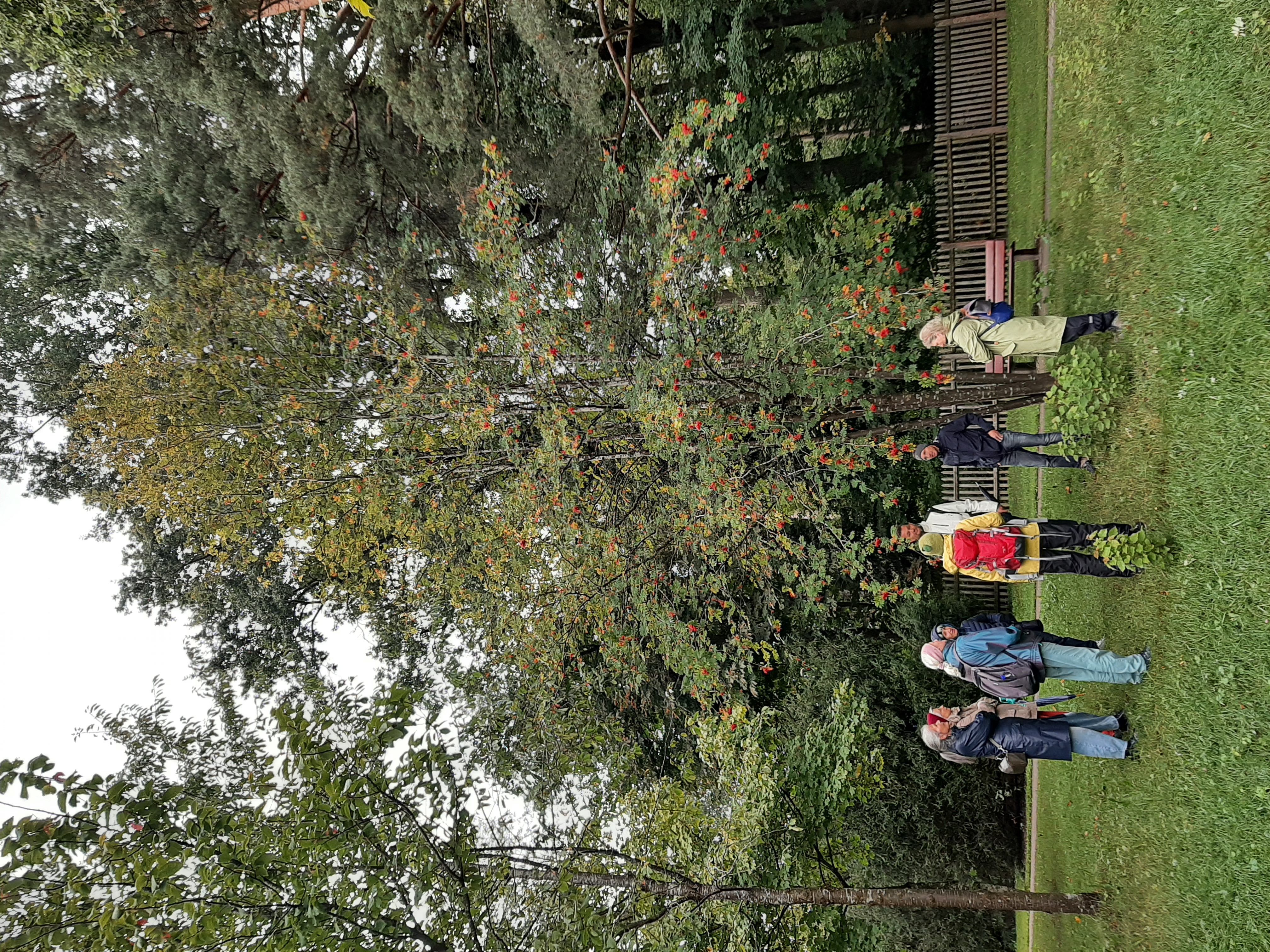 Die Feldbotanikerin Marianna Buser führte während 1 ½ Stunden durch die parkartige Anlage des Ostfriedhofs. Das Bestaunen alter, mächtiger Bäume gehörte ebenso dazu wie das Entdecken exotischer Bäume, beispielsweise der wenig bekannten Sumpfzypresse oder dem aus China stammenden Urweltmammutbaum. Vor allem aber öffnete Marianne Buser die Augen für einheimisches Gehölz. Für unsere Vorfahren bildeten sie eine unersetzliche Nahrungsquelle. Zugleich fungierten sie als gratis Hausapotheke. Wer heute Bedarf nach Vitamin C hat, kauft im Supermarkt eine Zitrusfrucht oder bedient sich eines Präparats aus der Apotheke. Früher griff man in solchen Fällen beispielsweise zu Beeren der Berberitze. Die Früchte unserer einheimischen Gehölze werden heute kaum mehr genutzt, eigentlich schade. Das Interesse für diesen frei zugänglichen Naturschatz möchte Marianna Buser mit ihrem Wissen vermitteln. Sie möchte animieren, wieder vermehrt die «Hausapotheke» und den «Früchteladen» der Natur zu nutzen. Am Schluss dieser Entdeckungsreise überraschte Marianna Buser mit selbstgemachten Köstlichkeiten. Allesamt hergestellt aus Früchten der Pflanzen die wir auf unserem Spaziergang entdeckt haben.