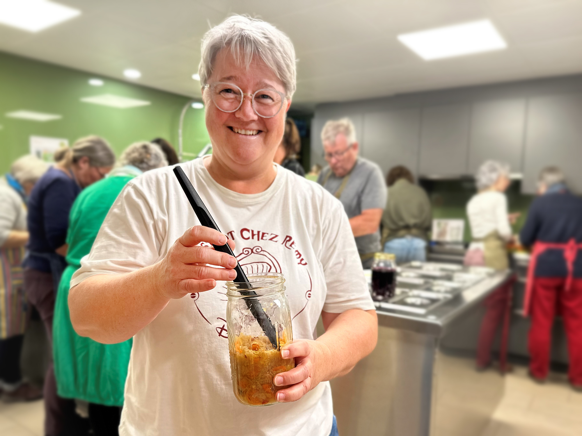 Die beiden Abendkurse im Domzentrum zum Einmachen und Fermentieren stiessen auf grosse Resonanz. Den Auftakt machte Ende April der Fermentierkurs. Nach kurzer theoretischer Einführung in die Thematik ging es ans Umsetzen, ganz nach dem Kursmotto «einfach machen». Unter kundiger Anleitung von Christina Müller, Inhaberin Lifelines, Gais, ging es dem Rohgemüse rasch ans Eingemachte. In Zweierteams wurde geschnitten, geraffelt und dann vor allem fest geknetet und gedrückt. Schliesslich musste dem Gemüse der Saft regelrecht erpresst werden. Dies konnte gelegentlich auch mal für einen tiefen Durchschnaufer sorgen. Am Ende des Kurses gab es durchweg glückliche und zufriedene Gesichter. Das Endprodukt konnte gleich nach Hause genommen werden. Es ist hoffentlich Inspiration für ein rasches Nachmachen.