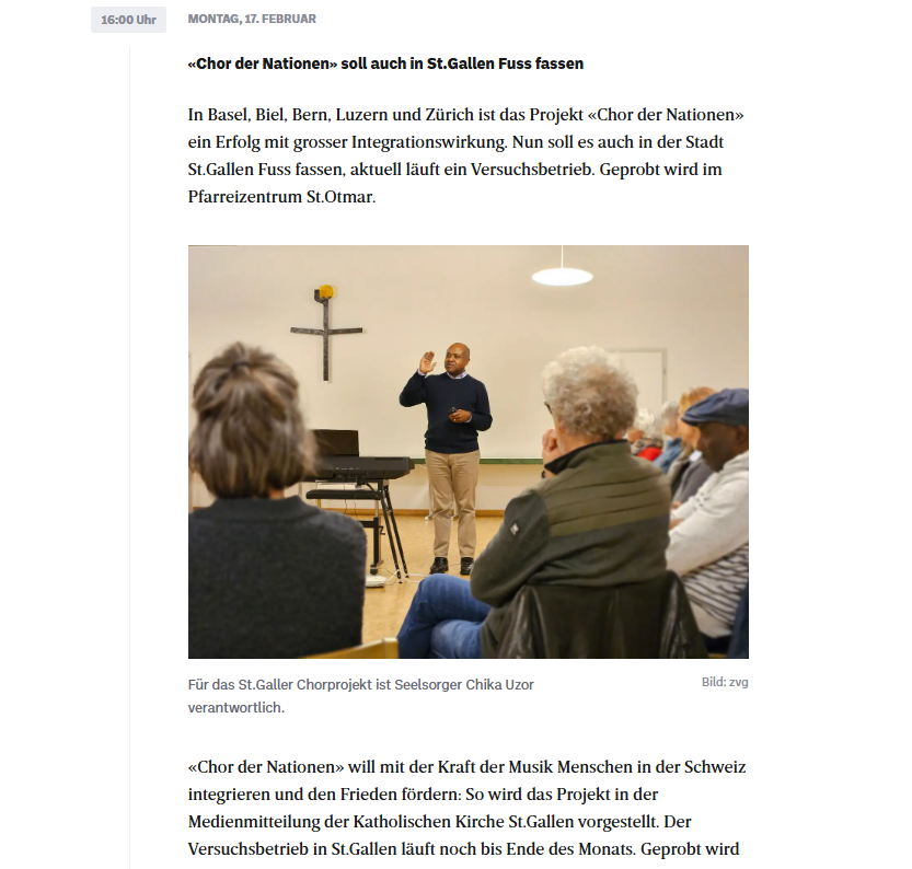 St.Gallen24.ch: «Chor der Nationen» will in St.Gallen Fuss fassen |