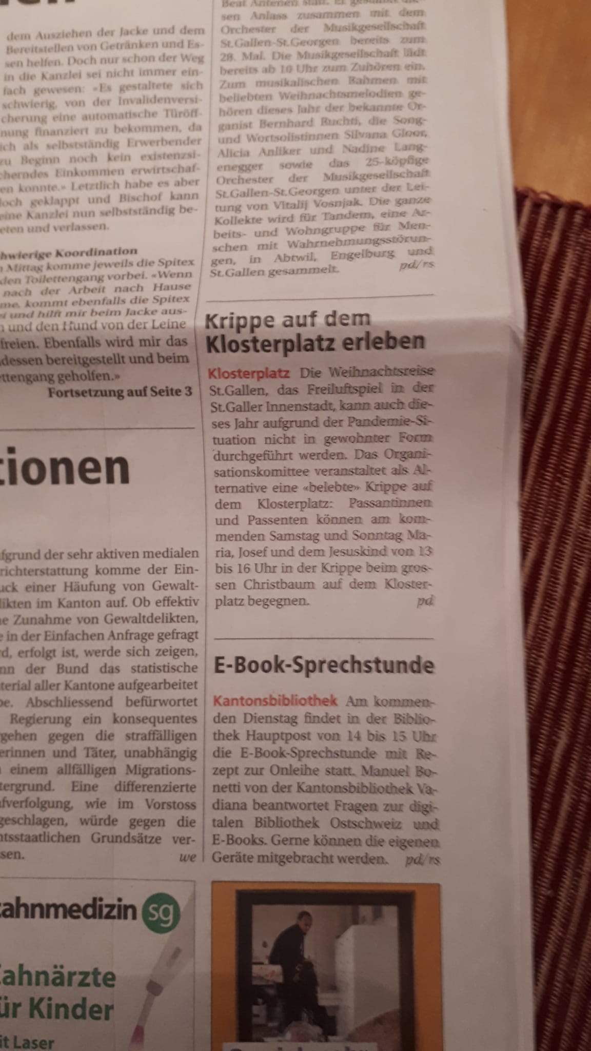 St. Galler Nachrichten, Adventszeit einläuten lassen - Grusswerkstatt |
